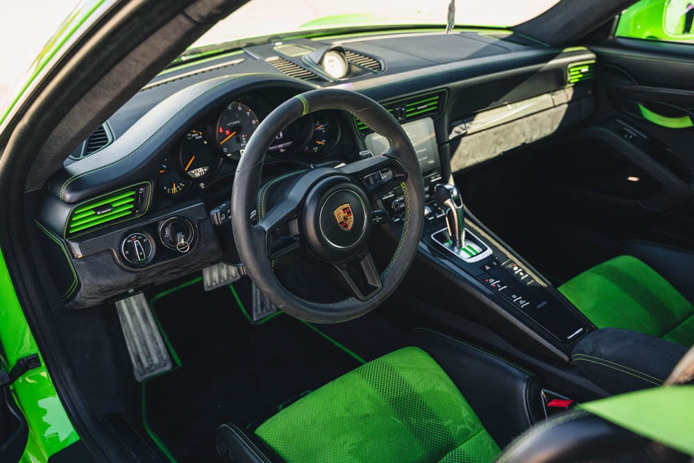 While the Porsche 911 GT3 RS is designed for extreme performance, it doesn’t compromise on comfort and luxury. Inside, the cabin features bucket-style racing seats upholstered in Alcantara and leather, offering comfort and support even during intense driving. The car is equipped with a Porsche Communication Management (PCM) system, allowing seamless connectivity, navigation, and entertainment. The BOSE sound system delivers high-quality audio, and the cabin’s ergonomic design ensures that everything is within reach for the driver, creating a cockpit-like atmosphere. The climate control and driver-centric digital dashboard add a touch of everyday luxury to a car designed primarily for track domination, ensuring that you experience the best of both worlds — performance and comfort.